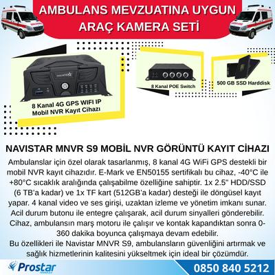 Ambulans Mevzuatına Uygun 1 TB 2 Kameralı 8 Kanal Mobil NVR Tak Kullan Set
