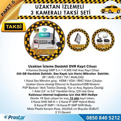 35.994,68 TL9.699,58 TL Taksi Kamera Seti 5 Uzaktan Izlemeli 3 Kameralı Wifi 500 Gb Harddisk Dahil