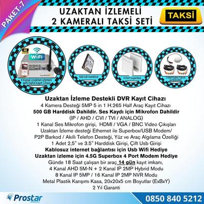 43.413,43 TL11.743,99 TL Taksi Kamera Seti 7 Uzaktan Izlemeli 2 Kameralı Wifi 4G 500 Gb Harddisk Dahil