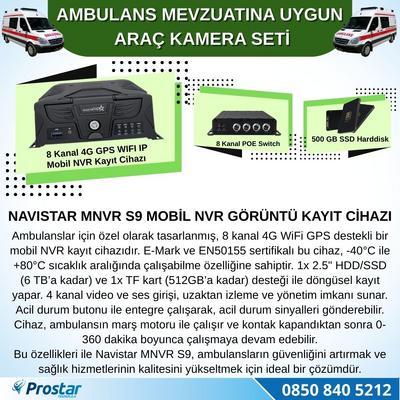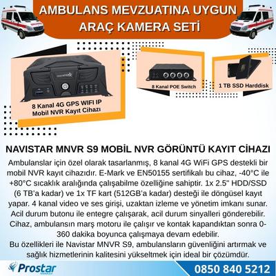 Ambulans Mevzuatına Uygun 1 TB 2 Kameralı 8 Kanal Mobil NVR Tak Kullan Set