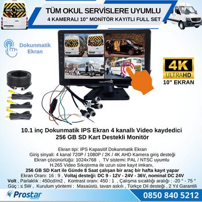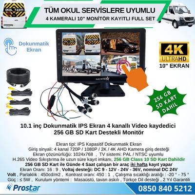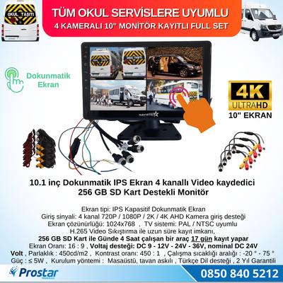 20.214,28 TL8.197,84 TL Kayıtlı 4 Kameralı 10 Inç Dokunmatik Monitör 256 Gb Sd Destekli Okul Servis Kamera Seti