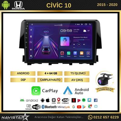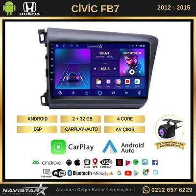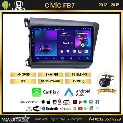Honda Civic Fb7 DUAL KNOB 10" 4GB + 64GB Android 13 Kablosuz Carplay 2012-2015 Navigasyon Multimedya Sistemi