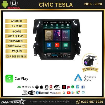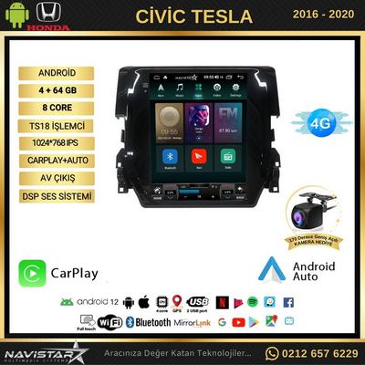 11.686,40 TL8.442,64 TL Honda Civic Tesla 4GB + 64GB 2016-2020 Model Kablosuz Carplay Navigasyon Qled Multimedya Sistemi