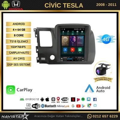 17.551,81 TL13.463,79 TL Honda Civic Tesla 4GB + 64GB 2008-2011 Model Kablosuz Carplay Navigasyon Qled Multimedya Sistemi