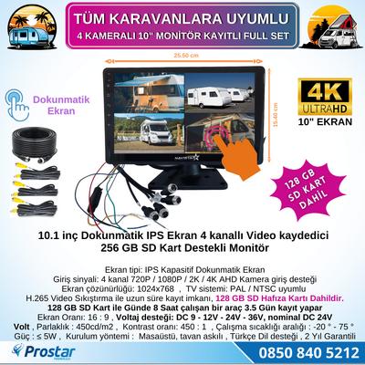 Karavan Kamera Seti 128 Gb Sd Dahil 4 Kameralı 10 Inç Dokunmatik Ekranlı Tak Kullan