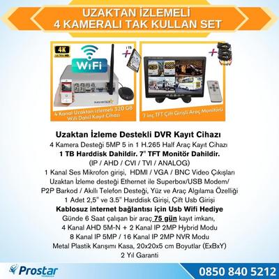 Ekonomik 4 Kameralı Kayıtlı 320 Gb Hdd 7 Inç Ekranlı Uzaktan İzlemeli Tak Kullan Set