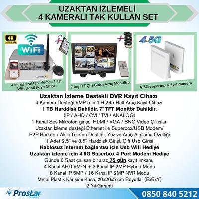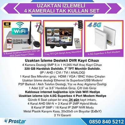 Uzaktan Izlemeli 4 Kameralı Wifi 4G 1 Tb Harddisk 7 Inç Ekranlı Araç Kamera Seti