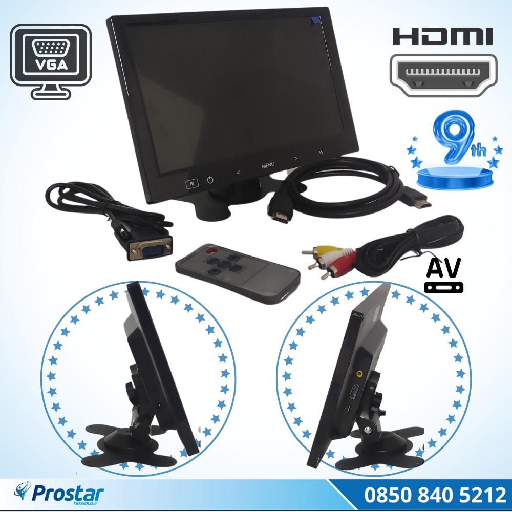 PROFESYONEL YÜKSEK ÇÖZÜNÜRLÜKLÜ HDMI, VGA, AV GİRİŞLİ 9" BÜYÜK MONİTÖR
