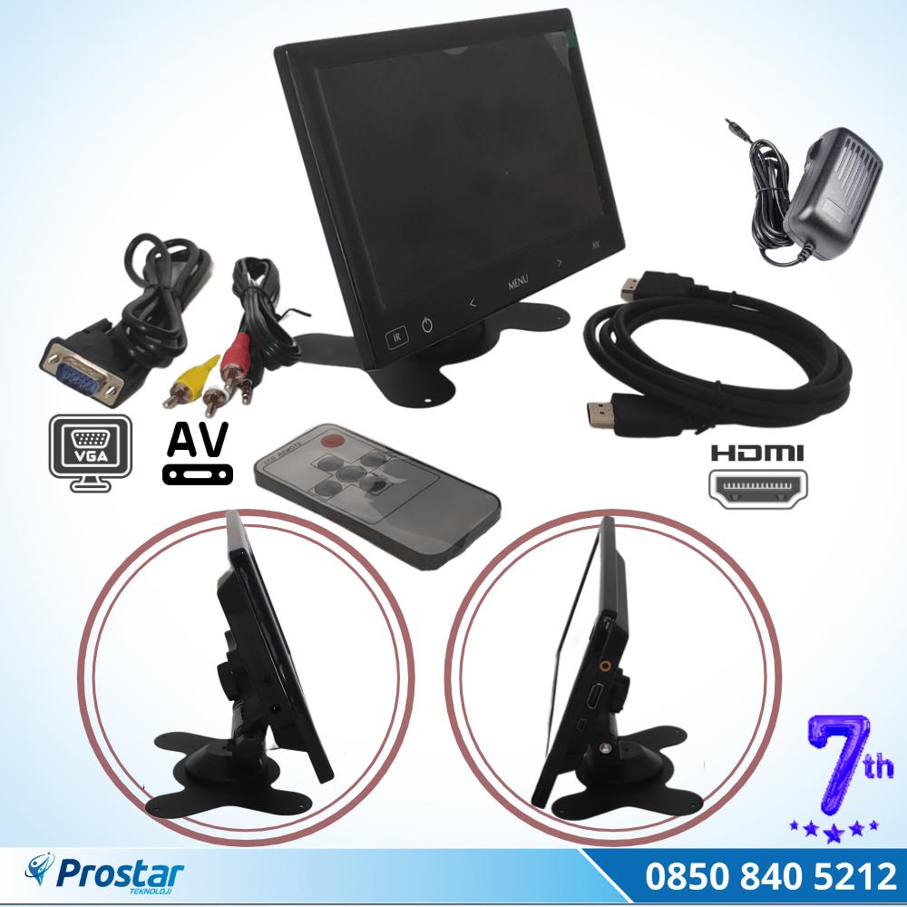 1 Adet 7” TFT LCD Monitör Ekran 3 in 1 (Hdmi, Vga, Av)