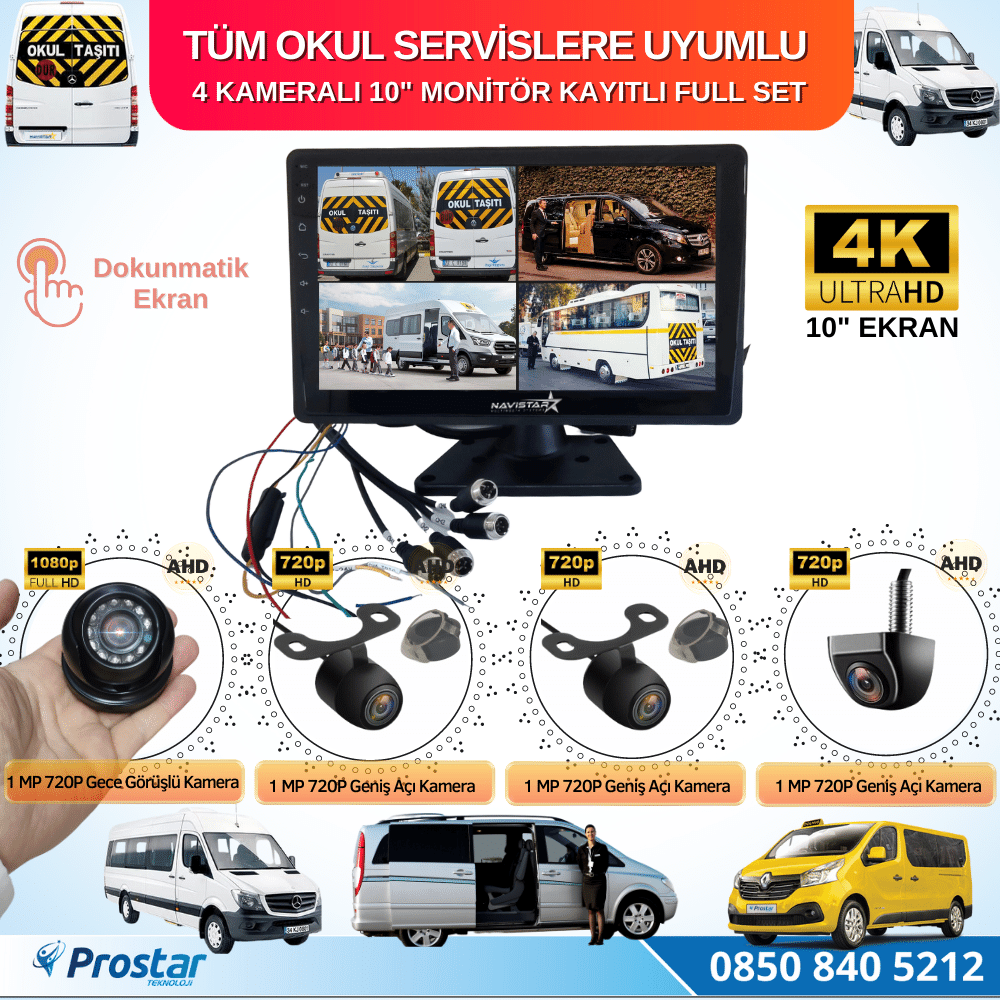 TÜM SERVİS OKUL ARAÇLARINA UYUMLU 10 İNÇ DOKUNMATİK EKRANLI,