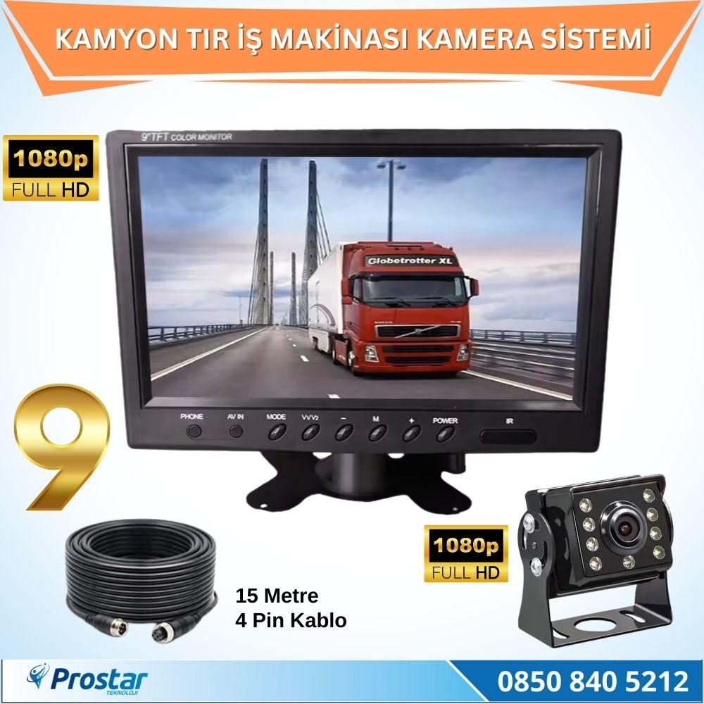 KAMYON TIR VE İŞ MAKİNASI GİBİ TÜM ARAÇLARA UYUMLU 9 İNÇ AHD MONİTÖRLÜ 1080P FULL HD KAMERALI 15 METRE KABLOLU TAK KULLAN SET