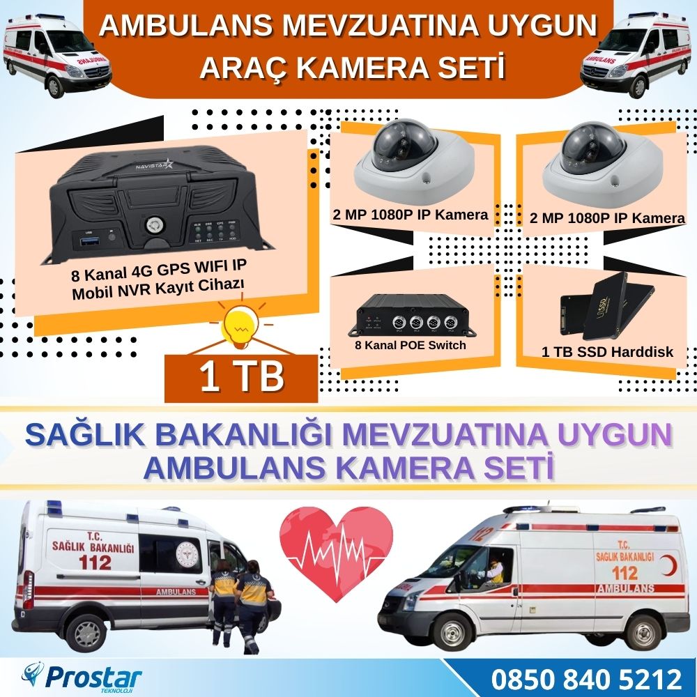 Ambulans Mevzuatına Uygun 1 TB 2 Kameralı 8 Kanal Mobil NVR Tak Kullan Set
