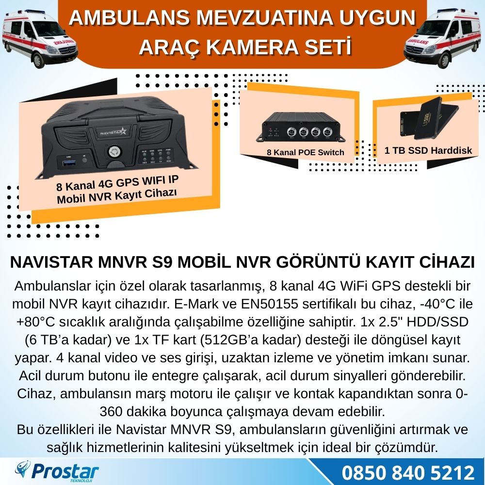 Son dönemde ambulanslar için getirilen kamera zorunluluğu, acil sağlık hizmetlerinin kalitesini artırmak ve güvenliği sağlamak amacıyla önemli bir adım olmuştur. Bu bağlamda, Navistar MNVR S9 Model 8 Kanal 4G GPS WiFi Mobil NVR kayıt cihazı ve Navistar IPCAM S5 Model IP kamera, ihtiyaç duyulan tüm standartları karşılamakta ve güvenilir bir çözüm sunmaktadır.
