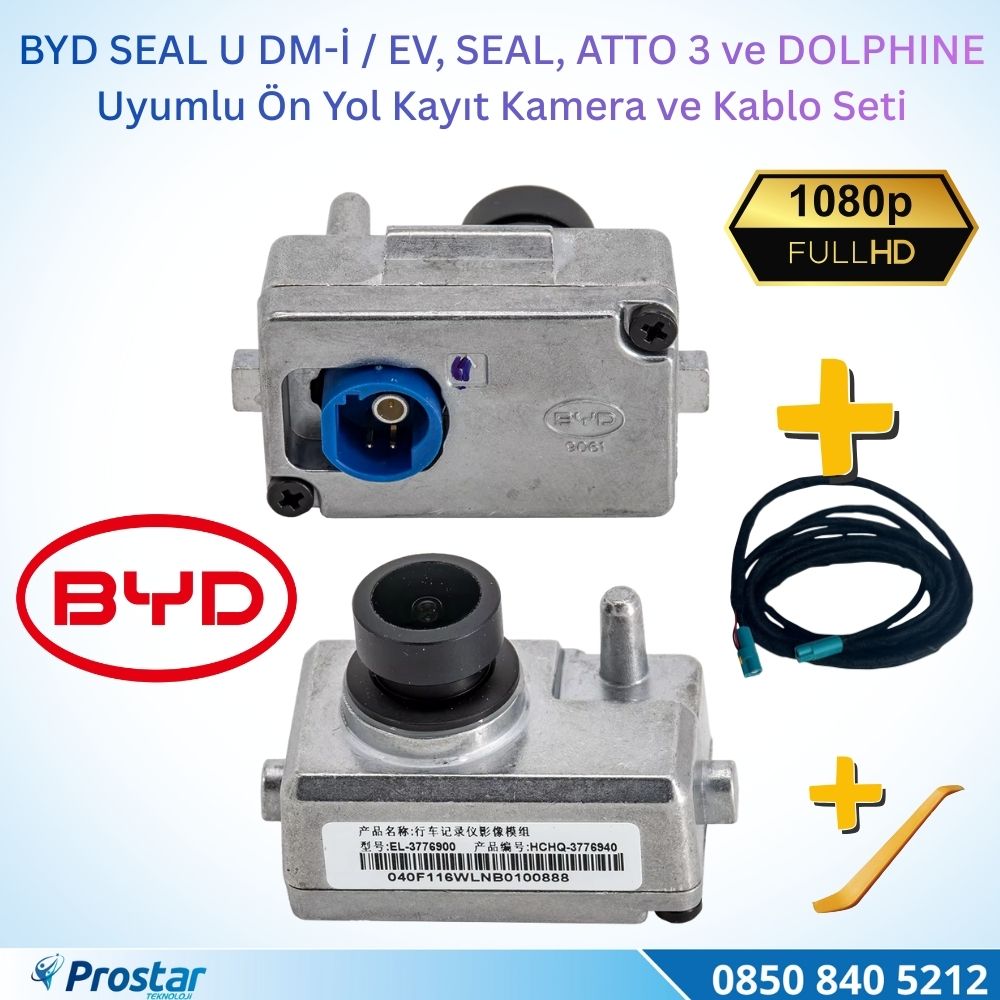 BYD SEAL U DM-i / EV, SEAL, ATTO 3 ve DOLPHINE Orijinal Ön Yol Kayıt Kamera ve Kablo Seti - 1080P Full HD