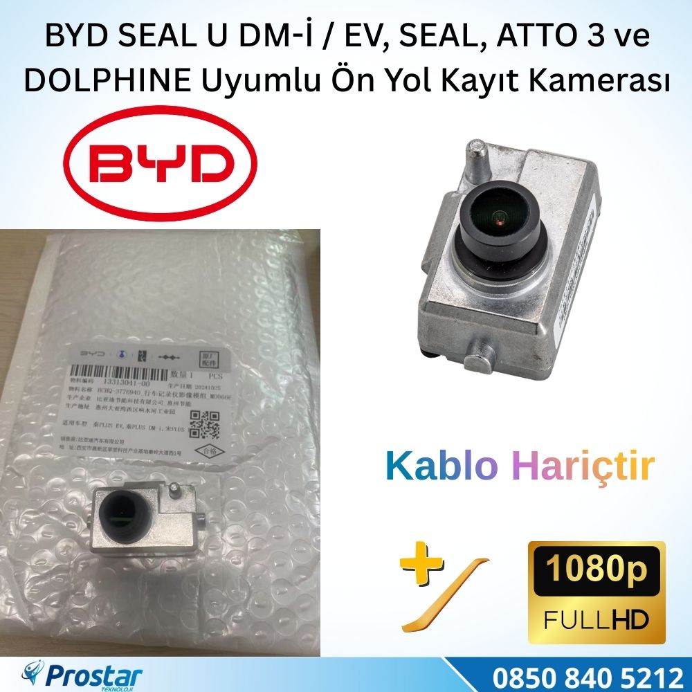 BYD elektrikli ve hibrit araç sahipleri için özel olarak üretilmiş orijinal ekipman kalitesinde ön yol kayıt kamerası. Araç güvenliğinizi maksimum seviyeye çıkarın.
