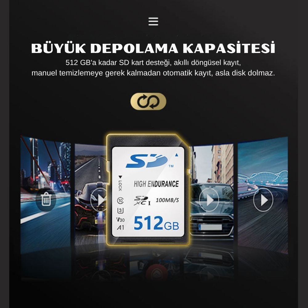 512 GB'A KADAR SD KART DESTEĞİ VE DÖNGÜSEL KAYIT