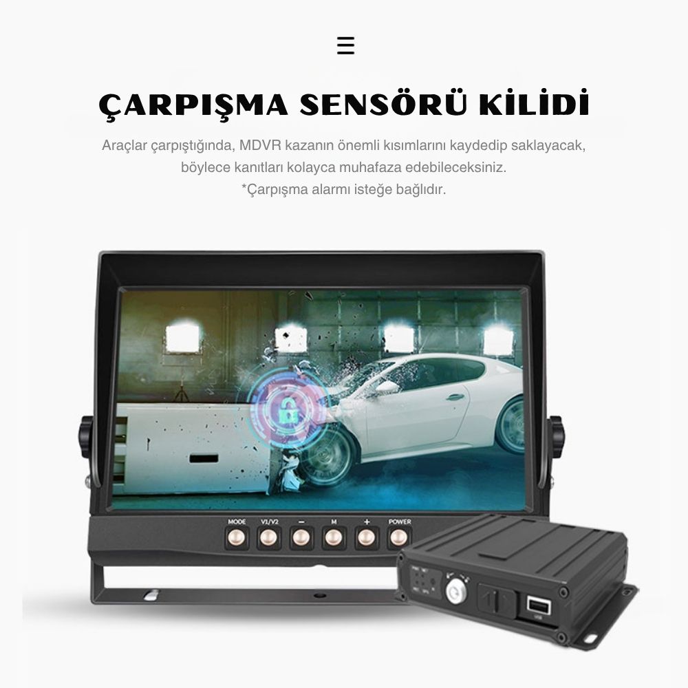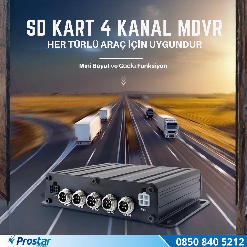 Tek bir cihazla 4 farklı kamera noktasından eş zamanlı kayıt yapabilirsiniz. Araç içi (sürücü), ön yol, yan ve arka gibi kritik noktalarda bağımsız kanallar (CH1, CH2, CH3, CH4) üzerinden kesintisiz görüntü alınır. Kayıtlar SD kart veya USB flash bellek aracılığıyla istenildiği zaman oynatılabilir.